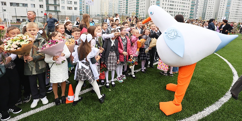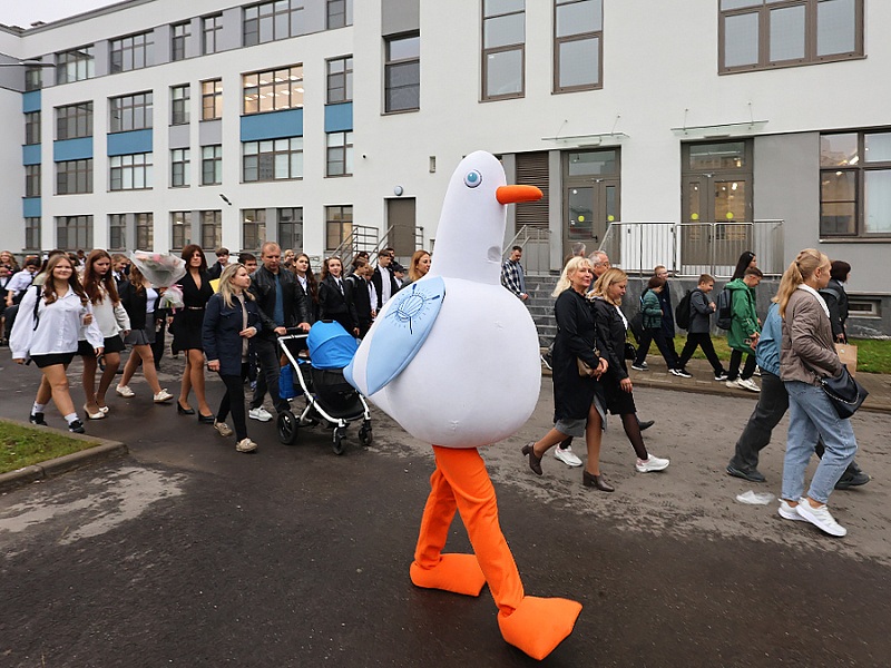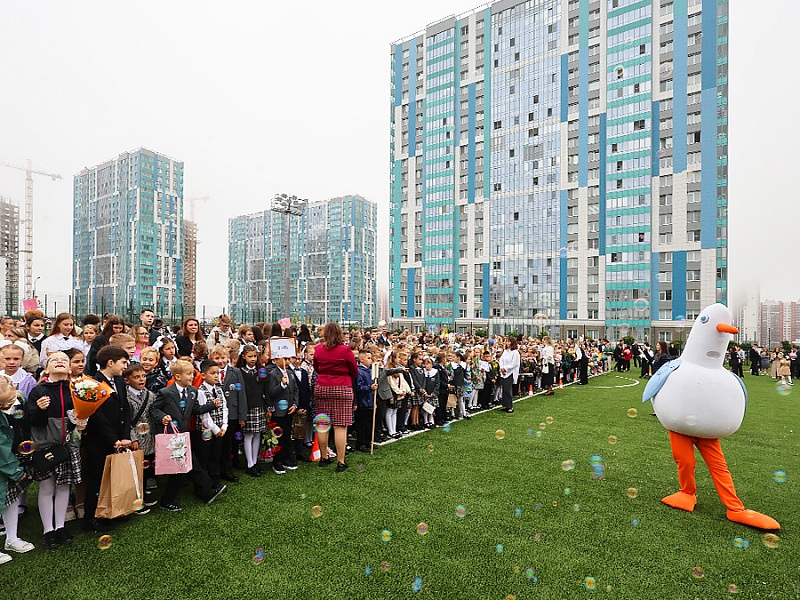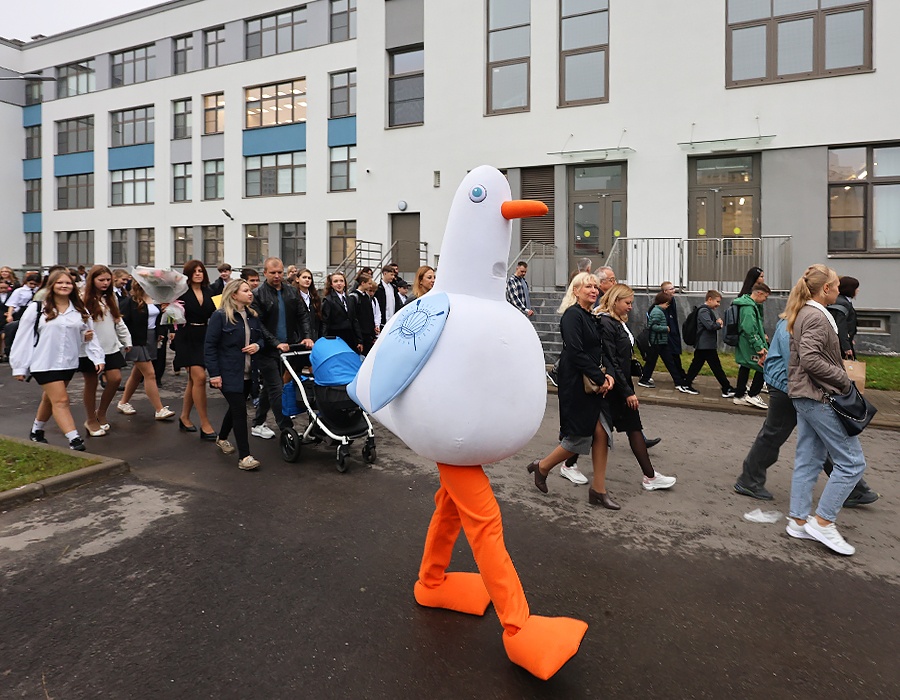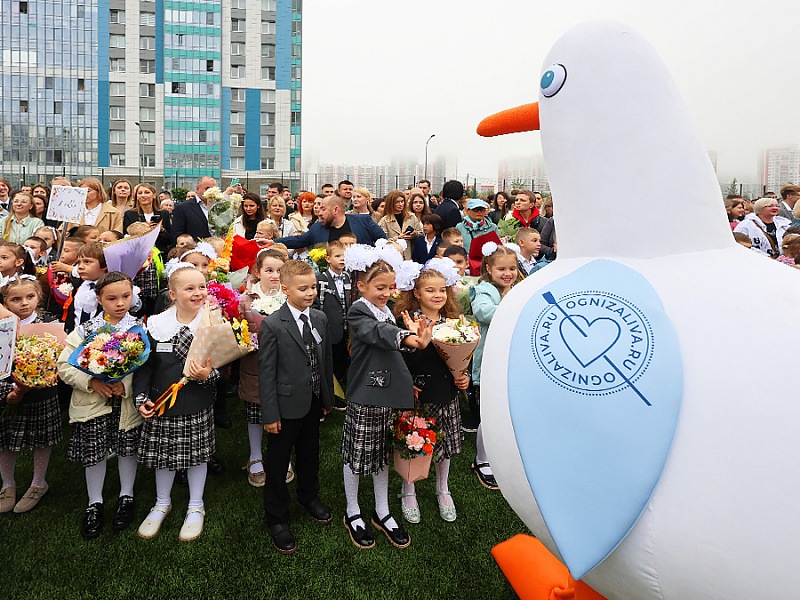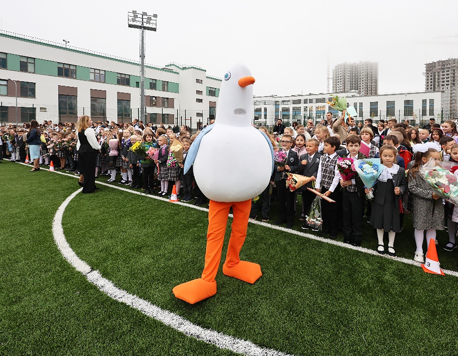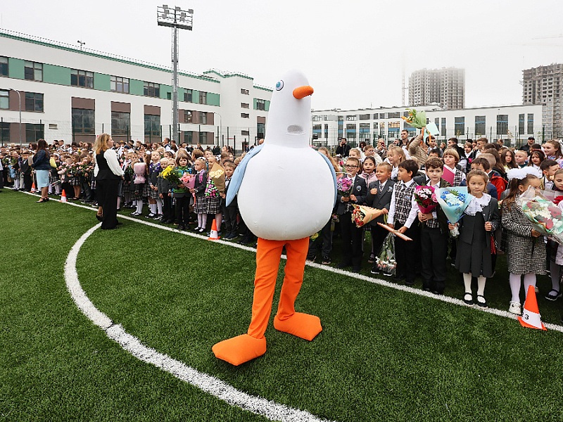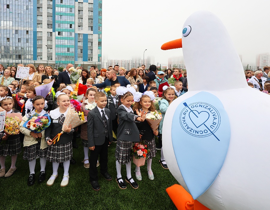 На церемонии открытия побывала чайка Огнюша - активный участник всех событий в ЖК «Огни Залива». Наша чайка проводила ребят на занятия и пожелала удачного учебного года!