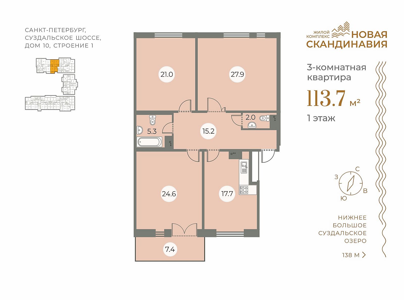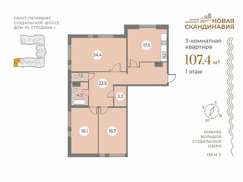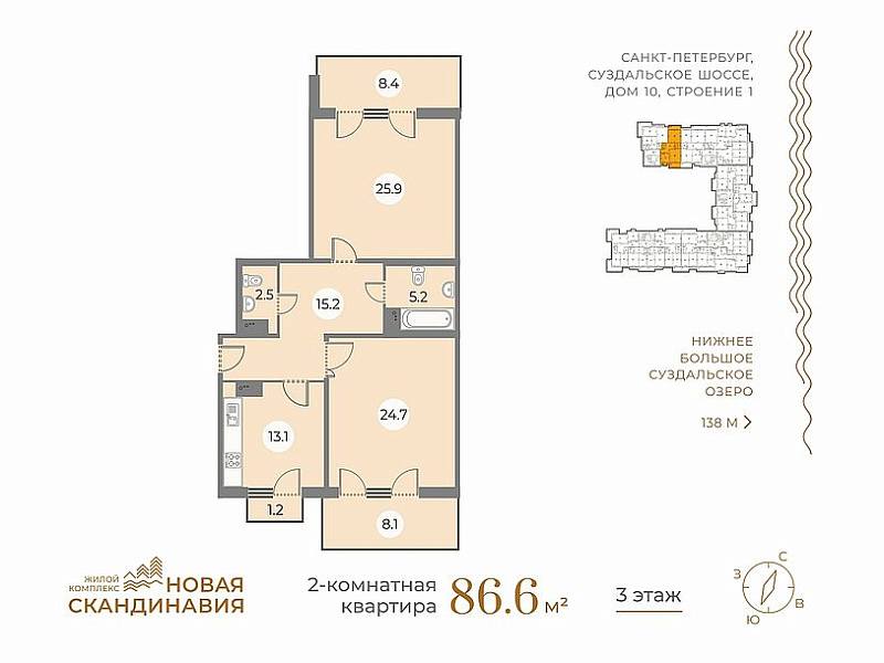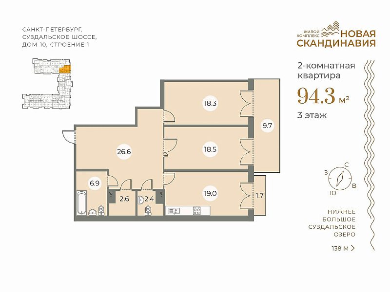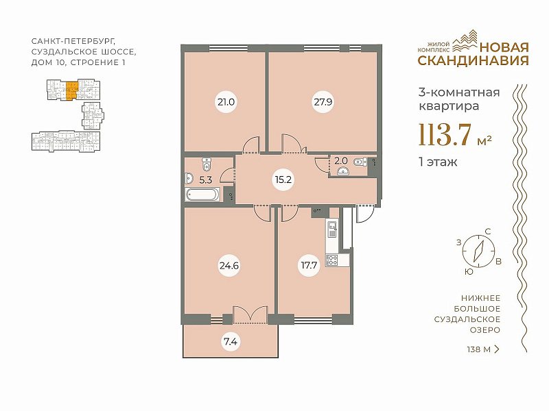 ЗАО «БФА-Девелопмент» предлагает в продажу готовые квартиры в сданном доме малоэтажного жилого квартала «Новая Скандинавия» по адресу: г. Санкт-Петербург, Суздальское шоссе, дом 10, строение 1.