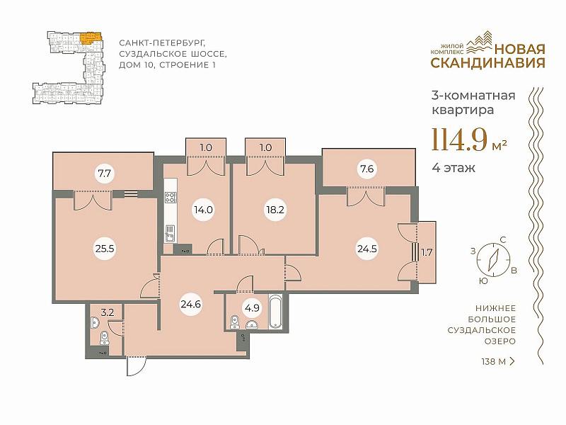 ЖК "Огни Залива": виртуальный тур по трехкомнатной квартире 83,5 кв.м.