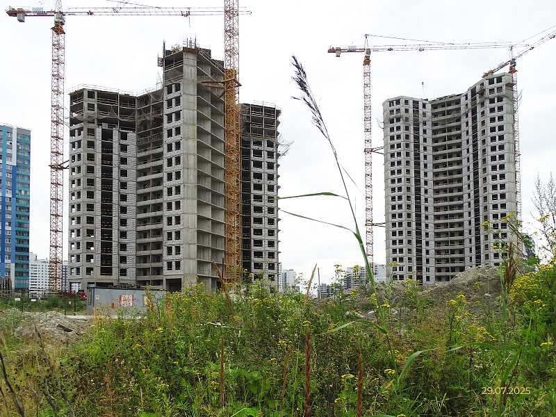 Застройщик ООО "Дудергофский проект" информирует о ходе строительства жилых корпусов на участках 269 (корпус 5) и 270 (корпус 6) в Юго-Западной Приморской части Санкт-Петербурга по состоянию на 01.08.2025г.