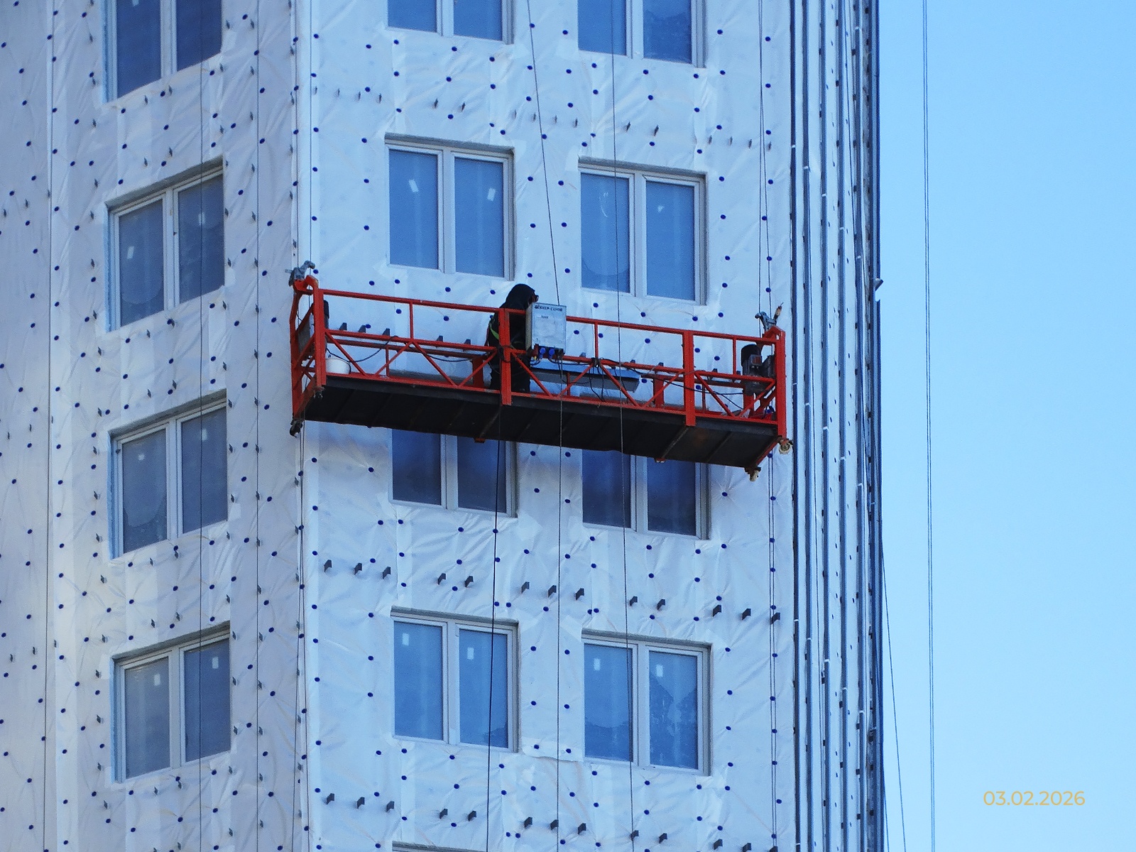 Идет монтаж витражного остекления.