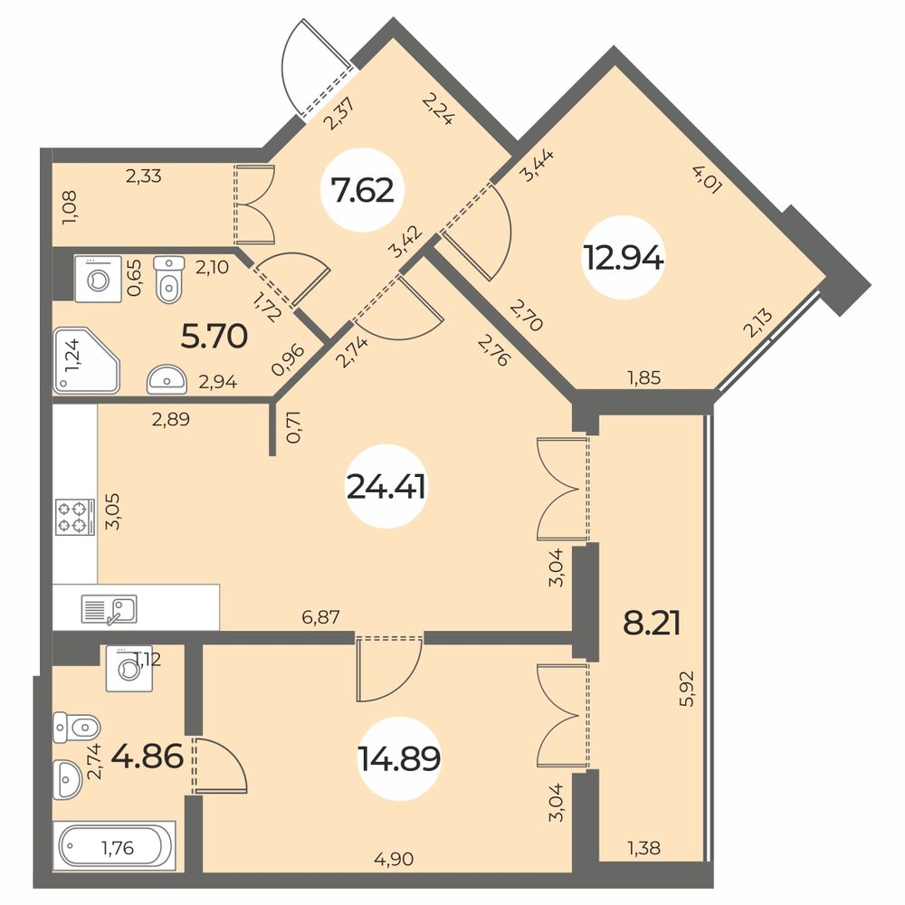 | «Огни Залива» 4 очередь | 5 | 3 | 1 | 5 | 3-комнатная квартира | 89.79 |
