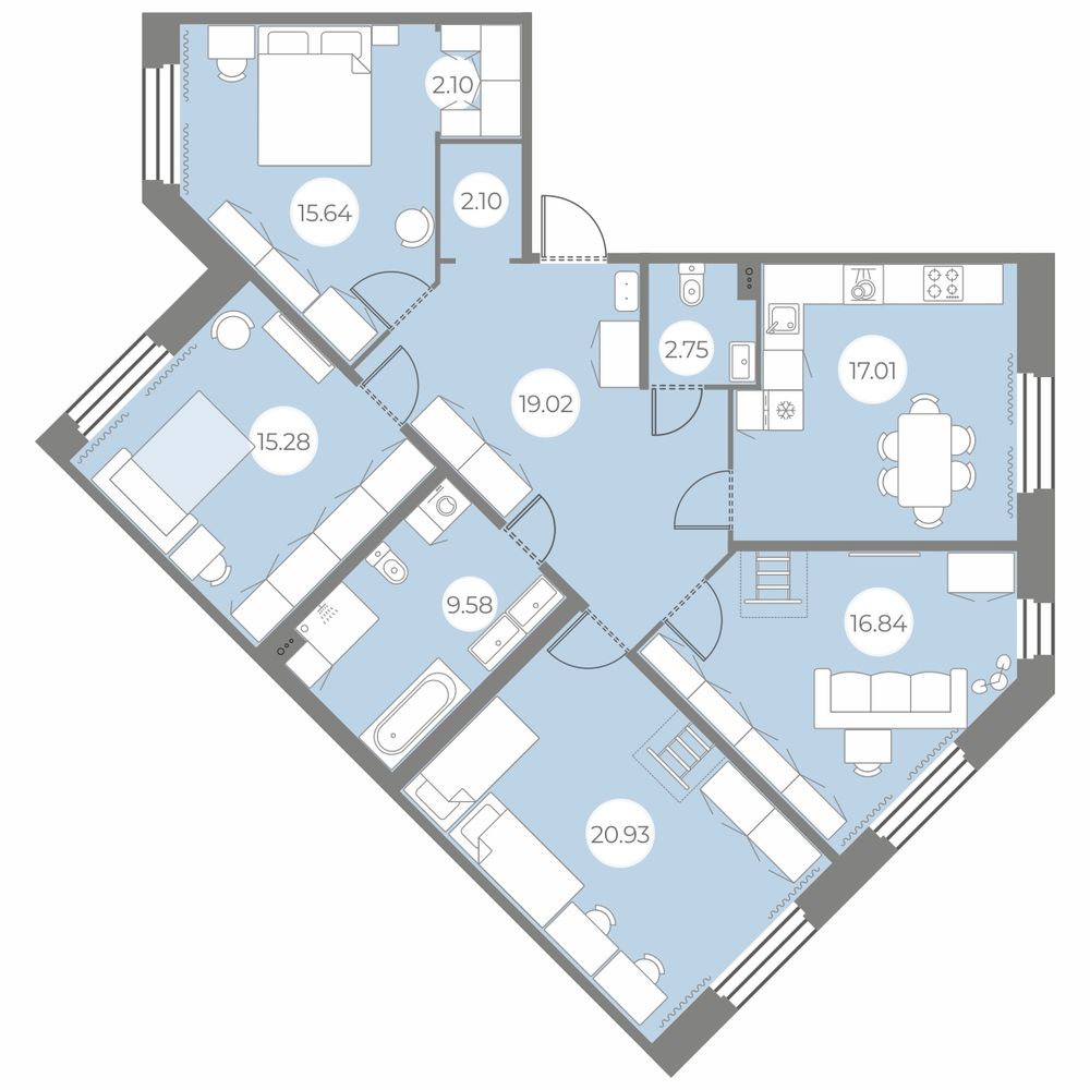 Указана приведенная проектная площадь квартиры. Фактическую площадь квартиры, согласно обмерам ПИБ (возможны небольшие расхождения с проектной площадью), вы можете уточнить в Отделе продаж.