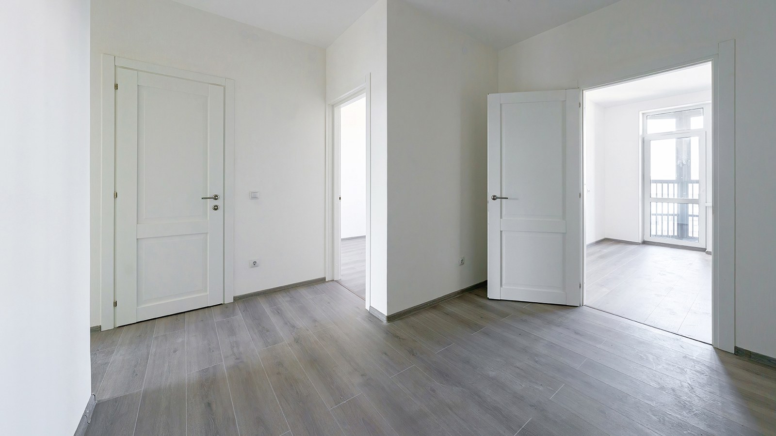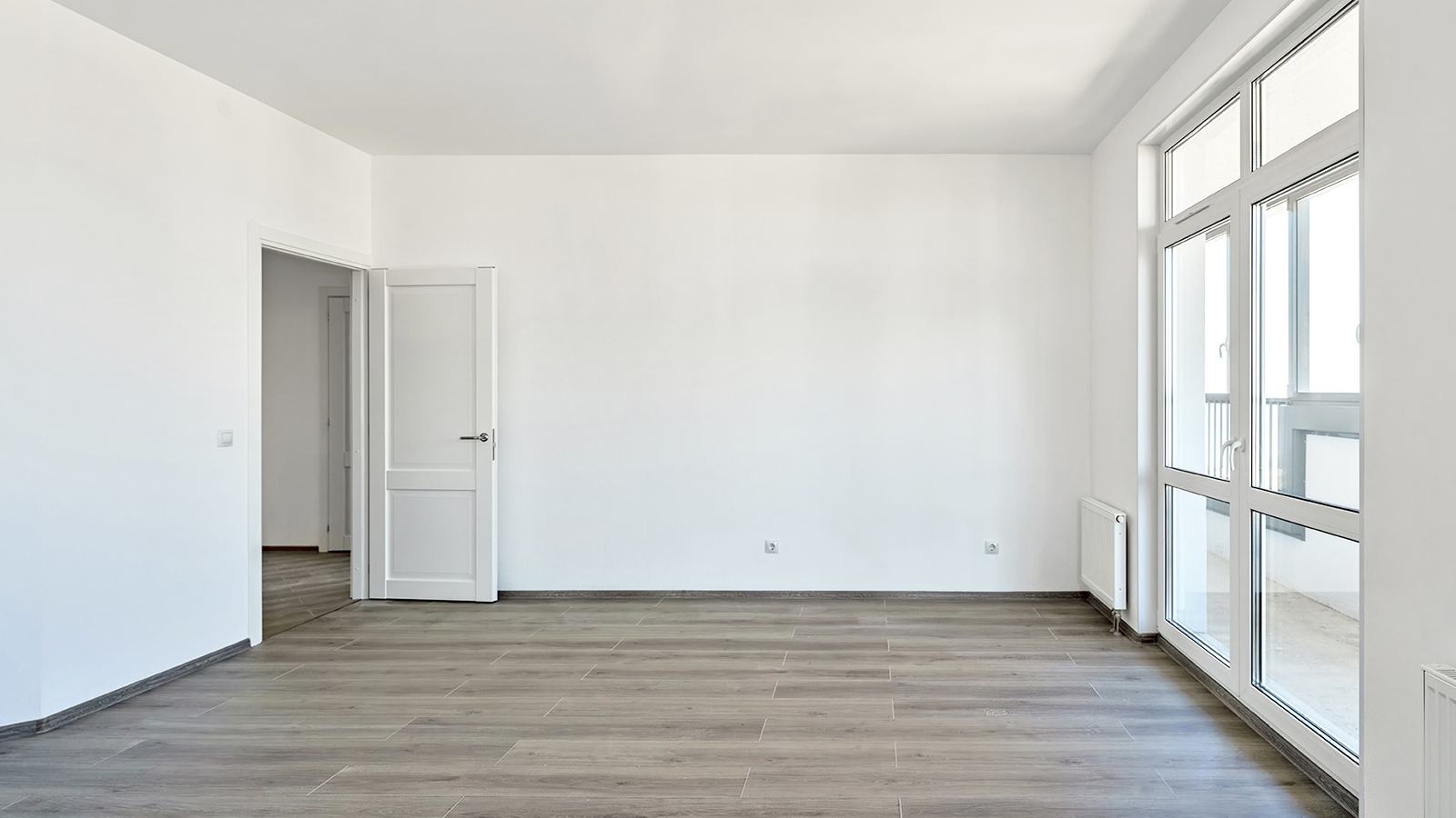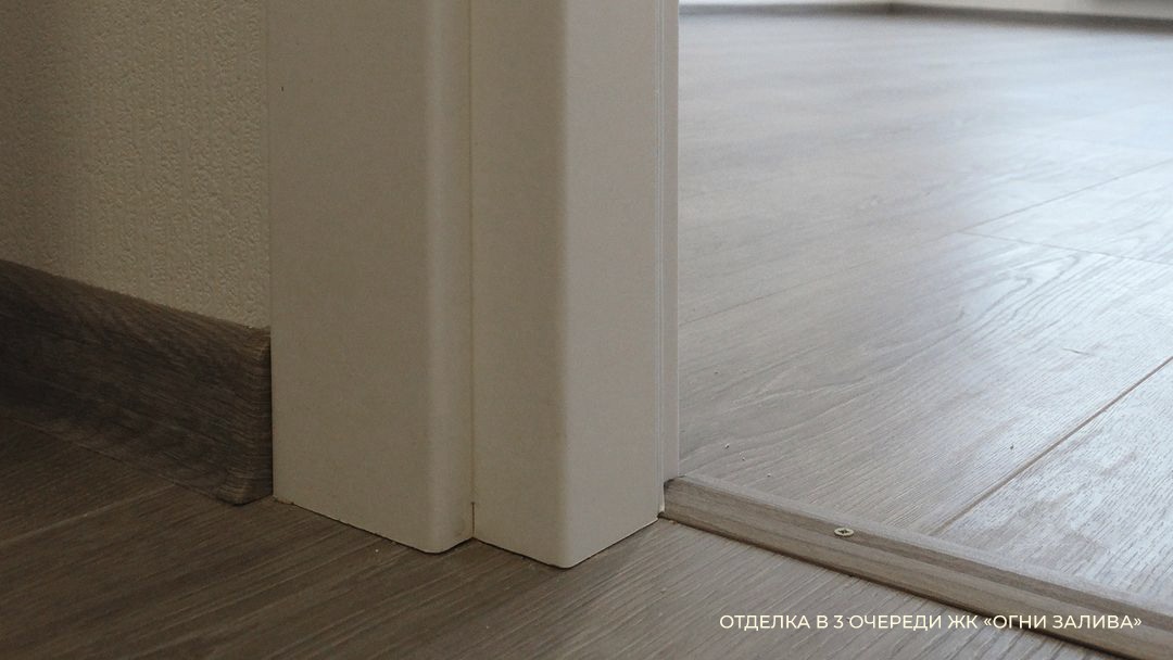В жилых помещениях и кухнях стены оклеиваются обоями под покраску, на полу укладывается ламинат. Стены и полы санузлов облицованы плиткой.