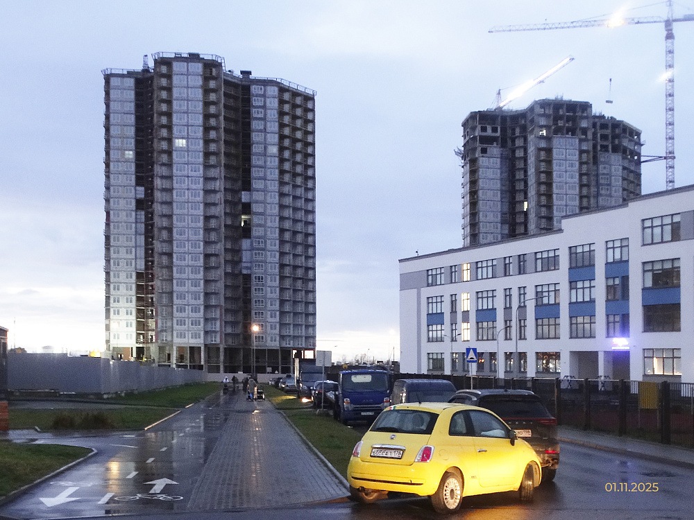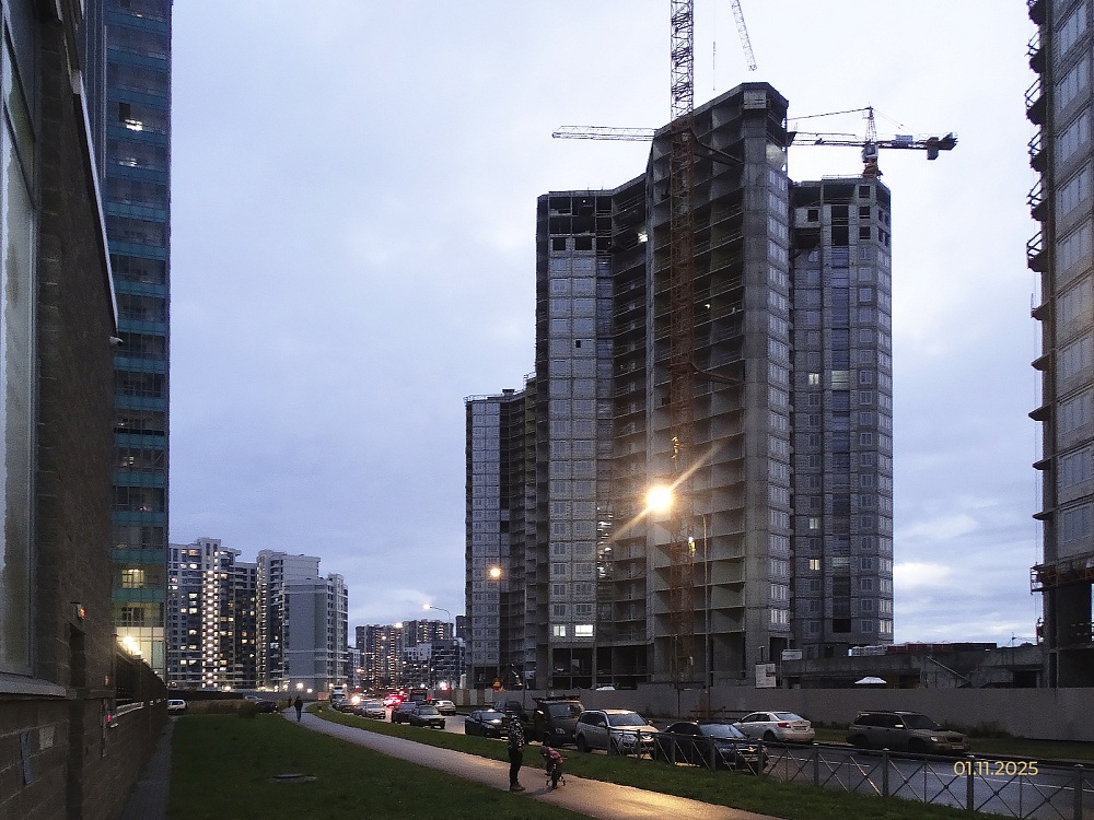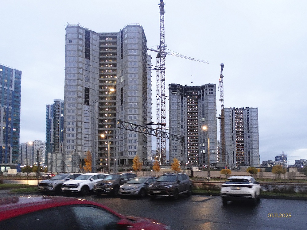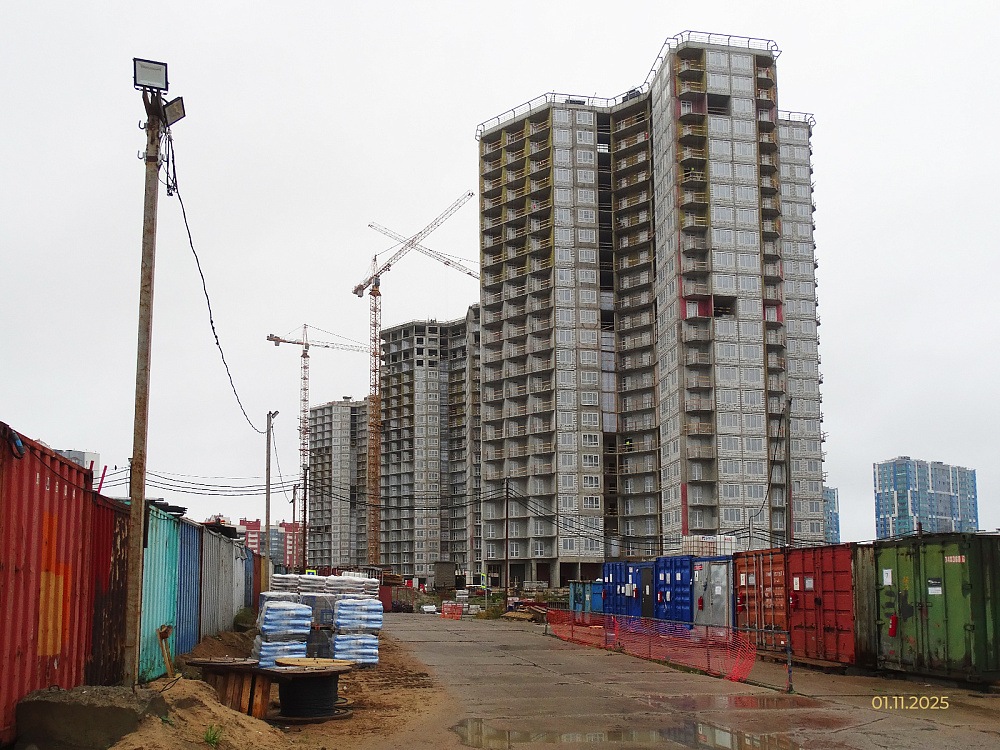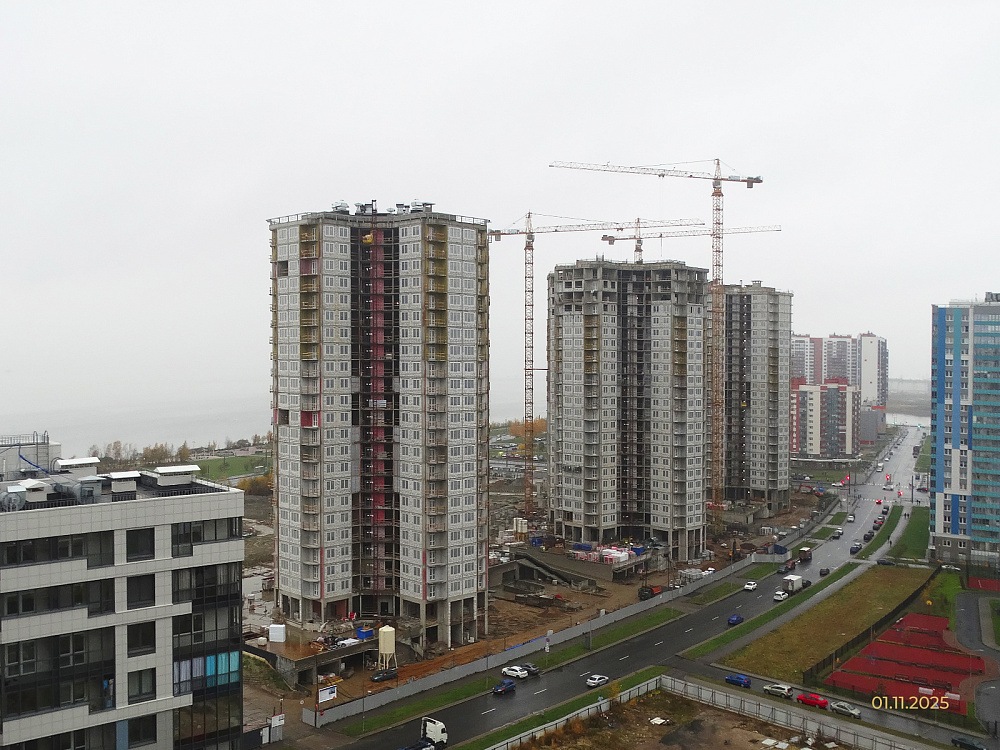 Застройщик ООО "Дудергофский проект" информирует о ходе строительства жилых корпусов на участках 269 (корпус 5) и 270 (корпус 6) в Юго-Западной Приморской части Санкт-Петербурга по состоянию на 07.11.2025г.